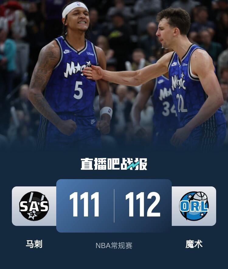 文班失绝杀&班凯罗准绝杀 小瓦格纳33+12+5 魔术险胜马刺