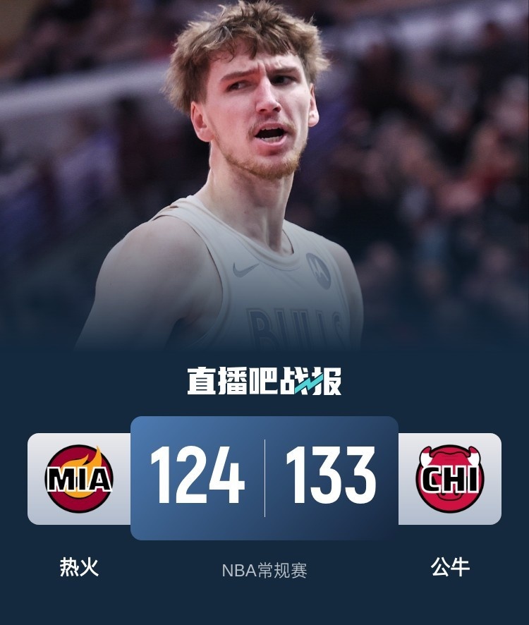 此役一上来邓罗手感滚烫连中三分,率队轰出12-2梦幻开局,公牛及时复苏短暂回应,但韦尔连投带罚独得13分,热火稳扎稳打牢牢占优,首节结束时热火领先5分,次节回来,双方火力不减继续对攻,中段公牛一度缩小分差,但热火内外结合再度确立优势,半场战罢,热火已经领先10分。易边再战后公牛回敬14-3攻击波一举反超,希罗及时发力守住优势,三节结束后热火依然领先9分,末节决战,场上形势风云突变,基迪连续取分率队反超,热火崩盘追分无望,最终公牛133-124逆转对手。