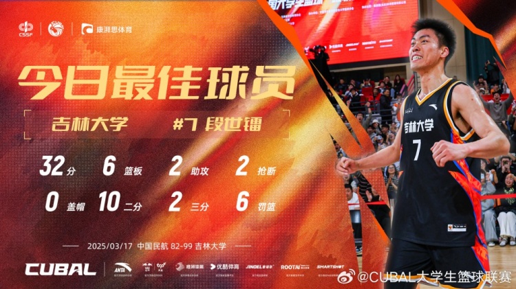 32分6篮板2助攻2抢断!CUBAL今日最佳球员:吉林大学段世镭!