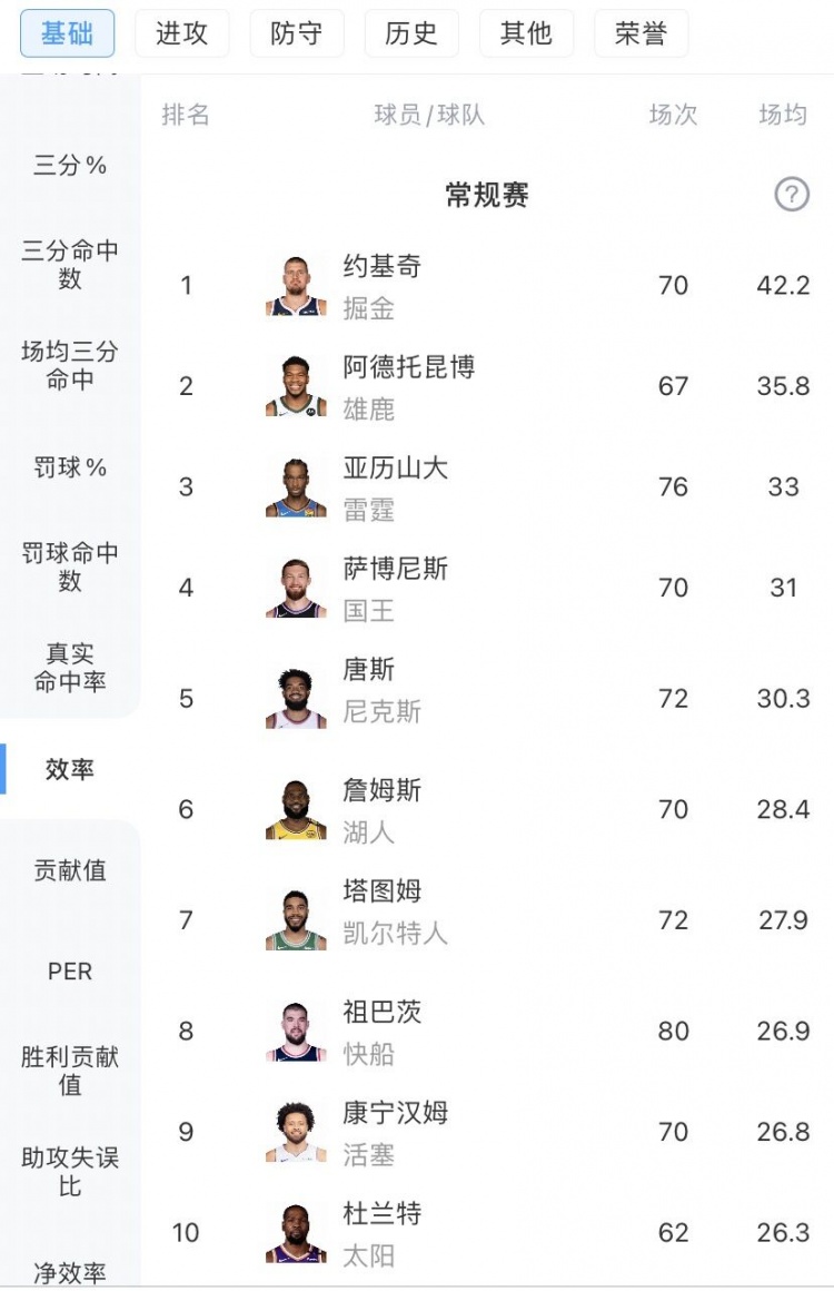 花落谁家!官方MVP榜SGA32.7+5+6.4暂居首 约基奇&字母排二三