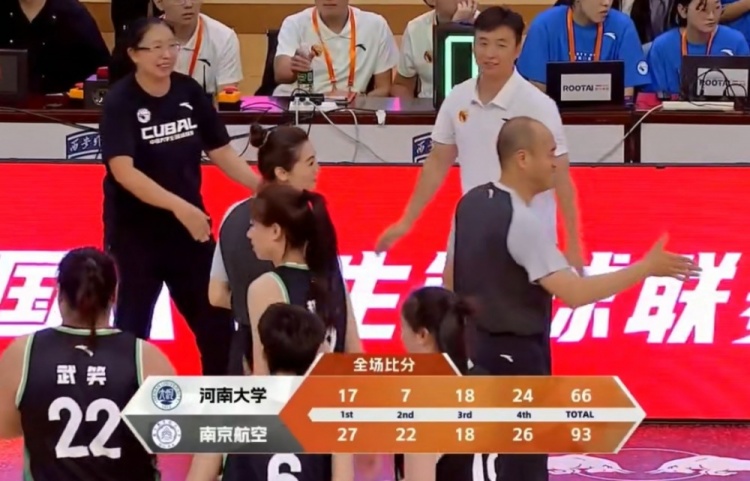 比赛开始,武笑内线强打先为南京航空拿到首分,谷云舒篮下也为河南大学开局,随后王佳颖和蔡佳航外线连续3记三分建立主动权。李田思棋三分终于止血,但武笑内线根本拦不住,连续取分帮助南京航空守住优势。首节南京航空27-17领先河南大学。