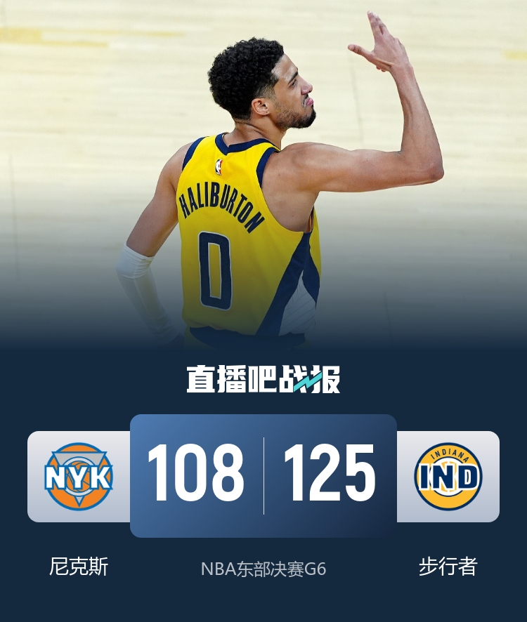 西卡31+5 哈利伯顿21+6+13 步行者4-2尼克斯杀入总决赛