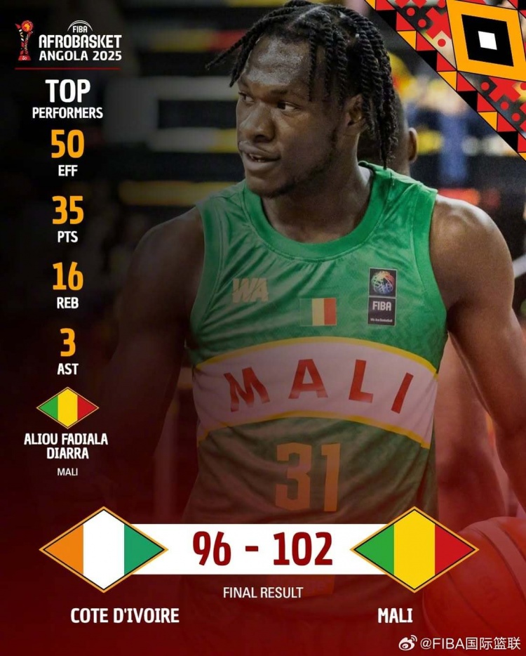 加时赛中,马里队攻势如潮,卡努特独中两记三分球,而科特迪瓦队仅依靠罚球得分,难以组织有效进攻,以96:102告负。