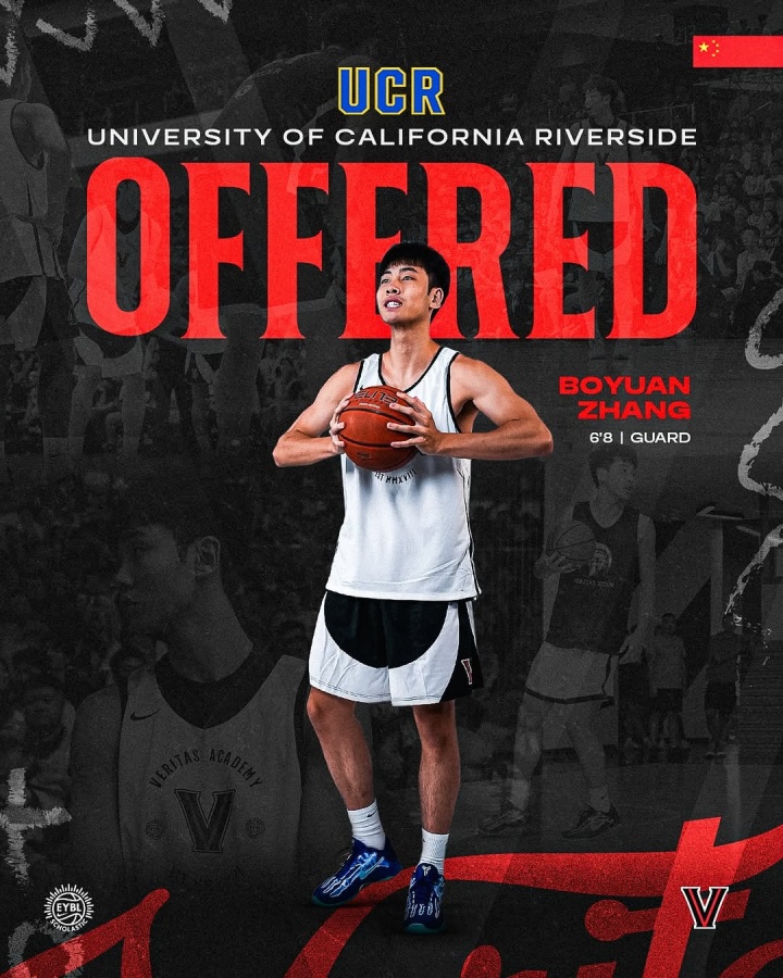 9月21日讯 美国高中Veritas Academy篮球队官方社媒更新动态,晒出队员们获得的NCAA学校offer,其中中国球员、山西队新星张博源拿到了一级联盟加利福尼亚大学河滨分校的offer,这是他的第一个NCAA一级联盟学校offer。