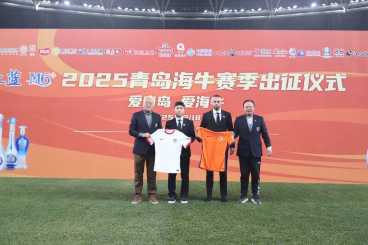 2月19日讯 据青岛海牛俱乐部官方报道,昨天青岛海牛举办了2025赛季出征仪式,新赛季的大旗由队长牟鹏飞从青岛市副市长赵胜村手中接过,标志全新赛季开始。