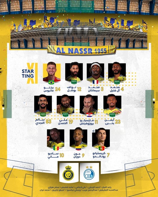 利雅得胜利vs德黑兰独立首发:C罗领衔,杜兰、马内先发