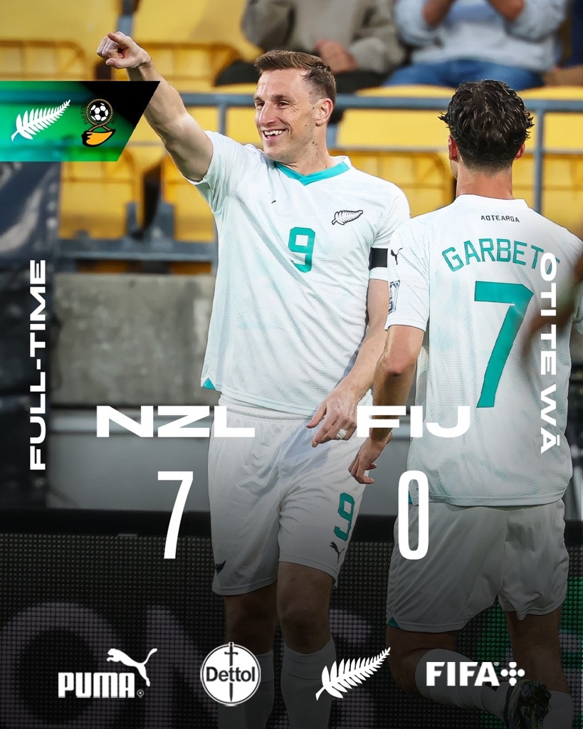 03月21日讯 2026年世界杯预选赛大洋洲区半决赛,克里斯-伍德首发出战63分钟便上演头球帽子戏法,新西兰7-0斐济晋级决赛。