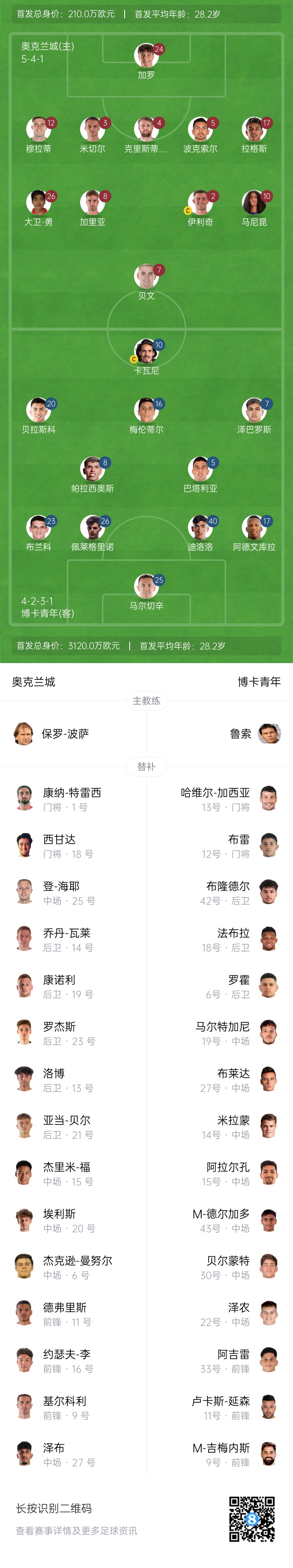 6月25日讯 北京时间6月25日3点,世俱杯小组赛C组第3轮,奥克兰城vs博卡青年,本场比赛在美国纳什维尔乔达公园球场进行。赛前双方公布了首发阵容。
