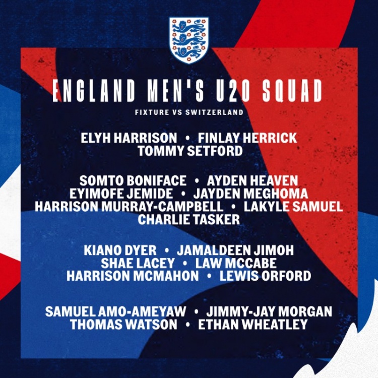 英格兰U20名单:海文、谢伊-莱西、塞特福德、沃特森在列